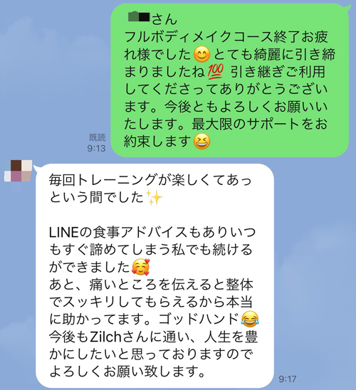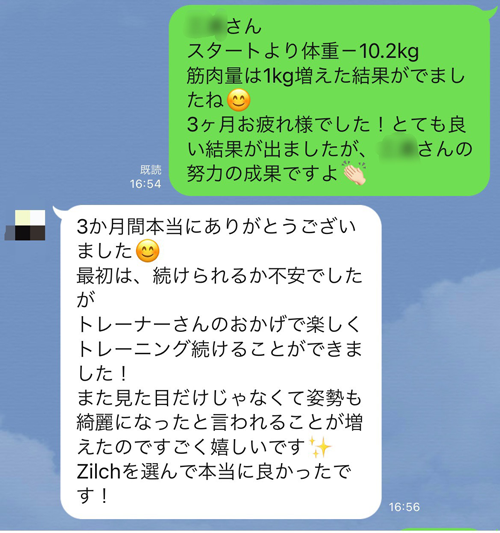 ウエイトトレーニングだけでなく、TRXなどの様々な器具で楽しくトレーニングしてくださいました。私自身大型ジムに行っていましたが、Zilchのトレーナーさんはケアで身体もみれる!知識も高く、自身も鍛えている!という点でも安心できました。トレーニング後のプロテインが豊富なのも毎回味が選べて楽しみです。