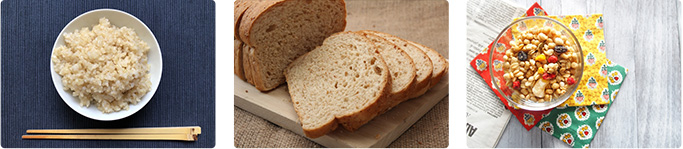 普通の米やパンに比べて糖質が控えめな玄米や全分粉パンを中心に取り入れた食事アドバイスを致します。